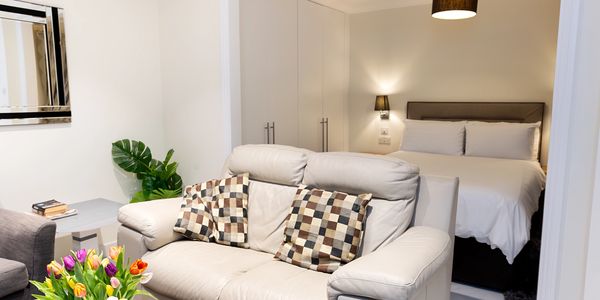Spacious one-bedroom apartment located on the 1st floor, suitable for up to 3 guests. The apartment features a large, comfortable lounge, a double bed and single bed, and a fully equipped kitchen. Ideal for longer stays in Marylebone.