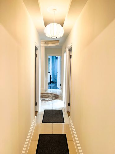 Along the master bedroom ensuite bathroom there is a master bathroom with a full sized bath and a smaller guest bathroom in the corridor